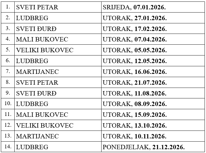 KALENDAR DOBROVOLJNOG DARIVANJA KRVI NA PODRUČJU GRADA LUDBREGA I OKOLNIH MJESTA